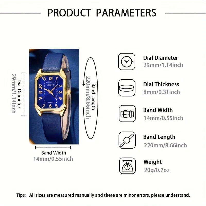 ساعة نسائية مستطيلية عتيقة ، ساعة كوارتز ، تناظرية ، جلد صناعي ، طقم مجوهرات معصم ، هدية لأمي ، لها ، طقم 6