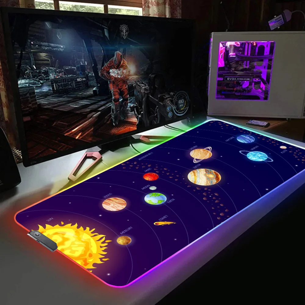لوحة ماوس ليد RGB للألعاب ، لوحة ماوس ، لاعب ، نظام شمسي ، كواكب ، حصيرة مكتبية ، كمبيوتر ، خزانة ، لوحة مفاتيح ، سجادة أنيمي ، ملحقات ، XL