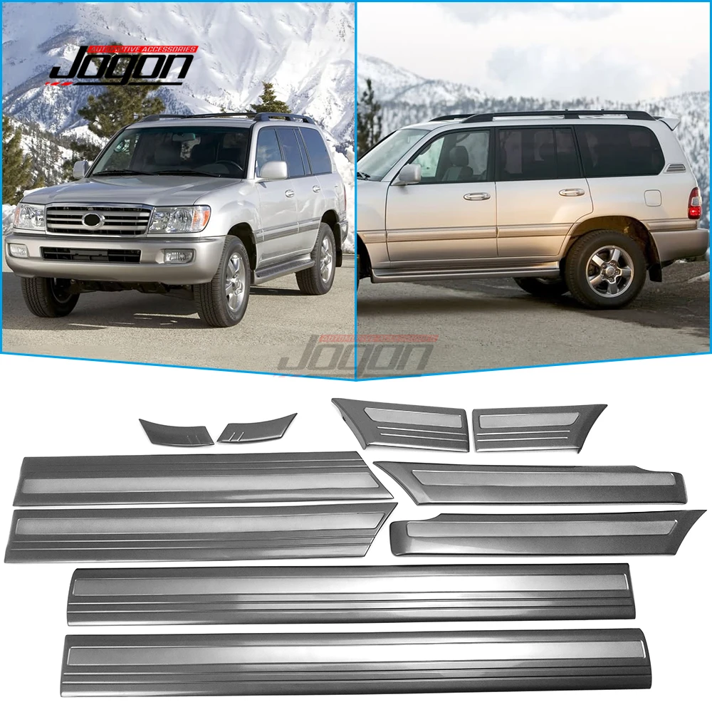 أغطية تشكيل هيكل الباب الجانبي للسيارة ، واقي هيكل الباب الجانبي ، ABS كروم ، تويوتا لاند كروزر LC100