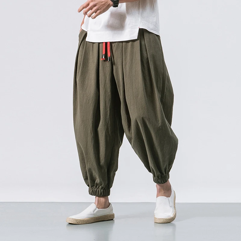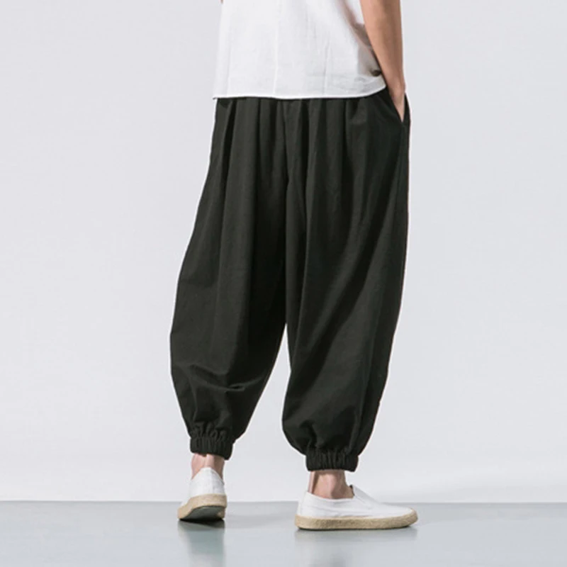 اسم المنتج: الرجال الربيع الصيف فضفاض الحريم السراويل الكتان زيادة الوزن سويتبانتس الصينية عارضة السراويل