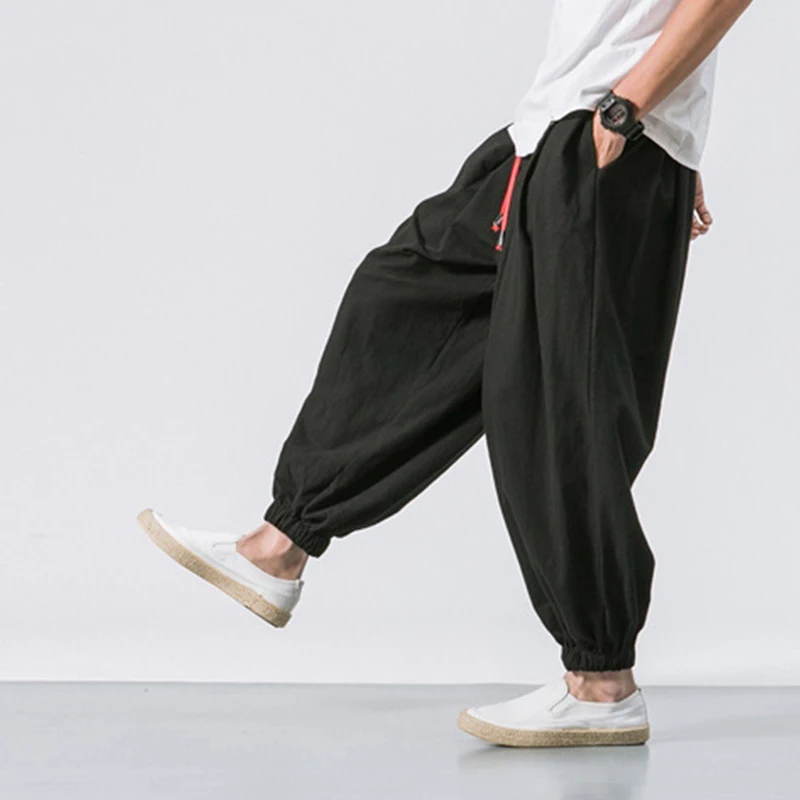 اسم المنتج: الرجال الربيع الصيف فضفاض الحريم السراويل الكتان زيادة الوزن سويتبانتس الصينية عارضة السراويل