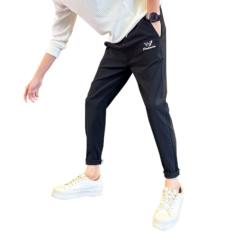 بنطال حريم كامل الطول للرجال ، كل المطابقة ، تطريز بحروف ، أسود ، ركض غير رسمي ، بنطلون بقصة ضيقة ، بيع بالجملة ، صيف