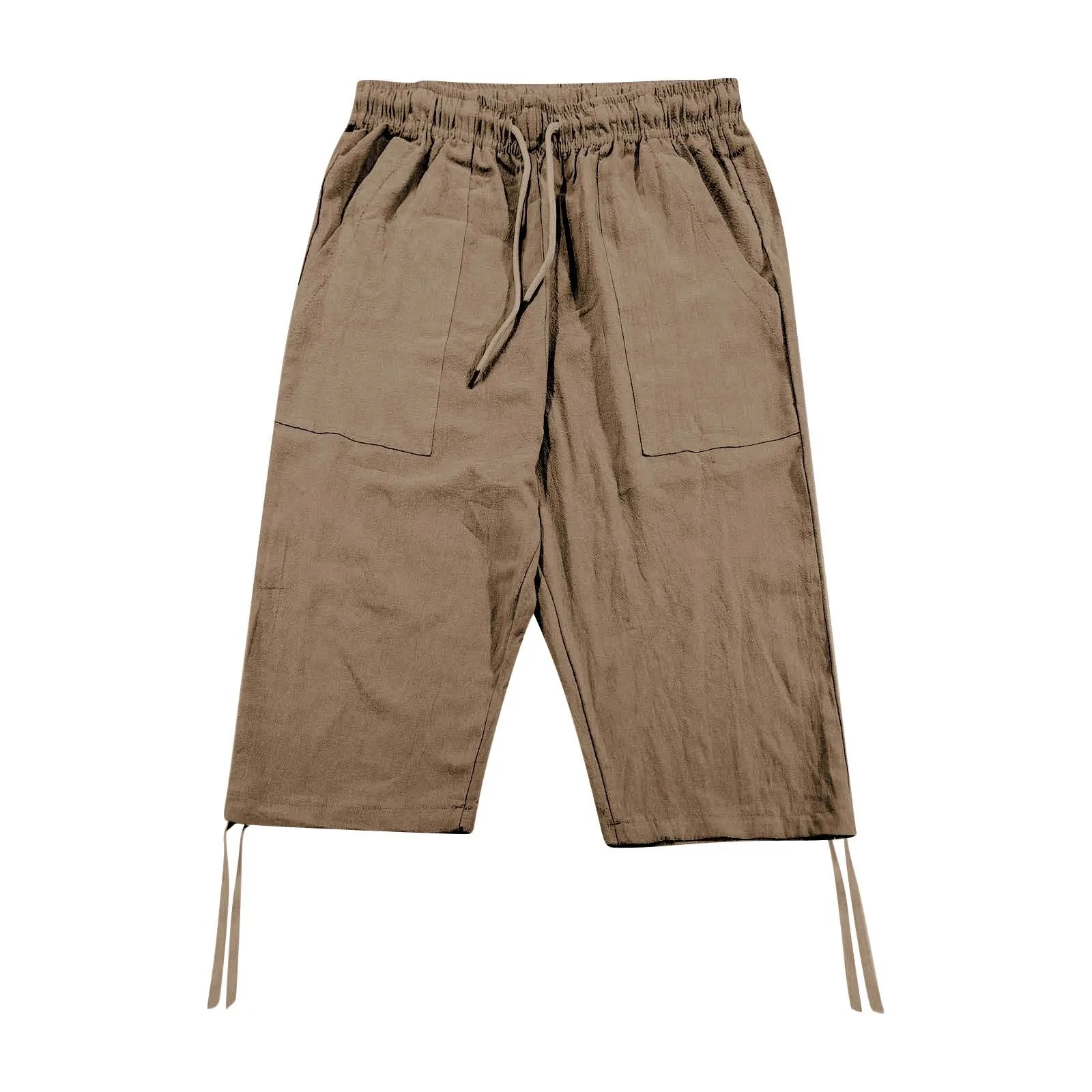 بنطلون كابري بحزام جانبي للرجال ، بنطلون رياضي من الكتان القطني ، بنطلون طويل فضفاض للركض ، بنطلون غير رسمي لملابس الشاطئ ، الربيع والصيف