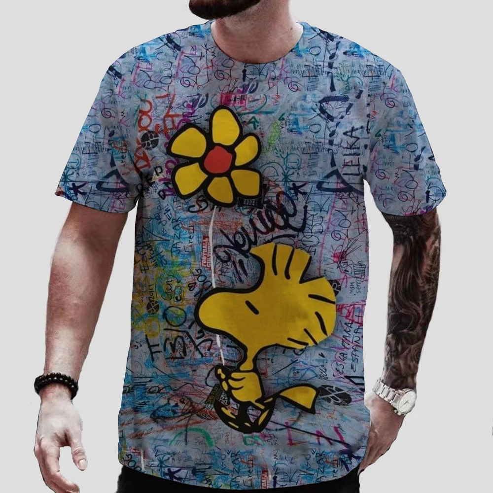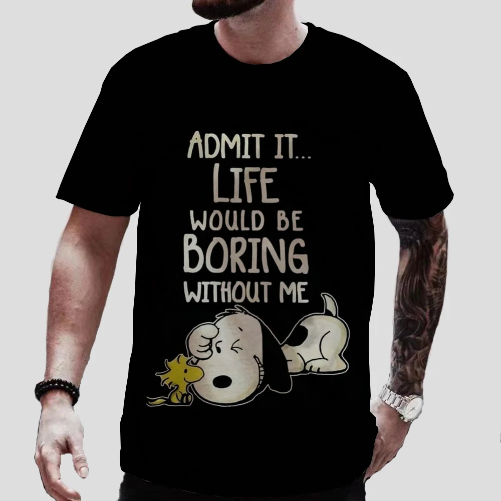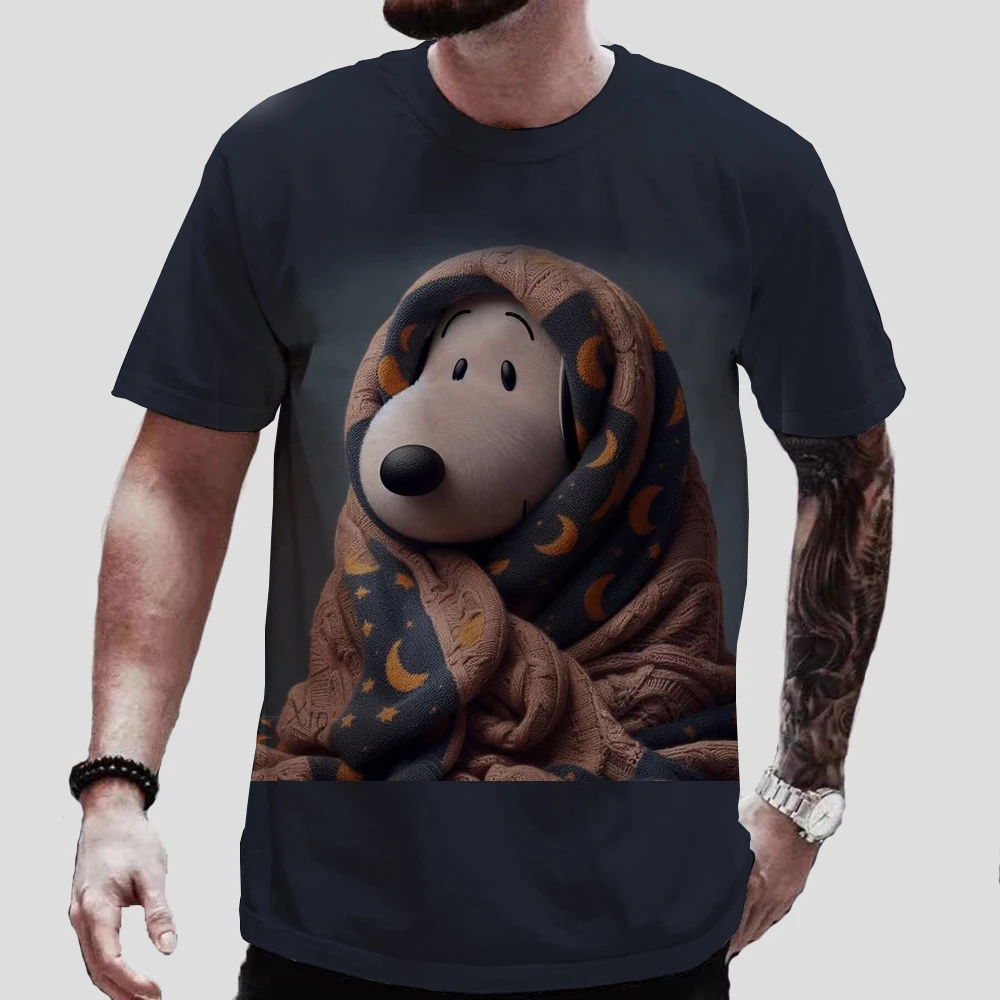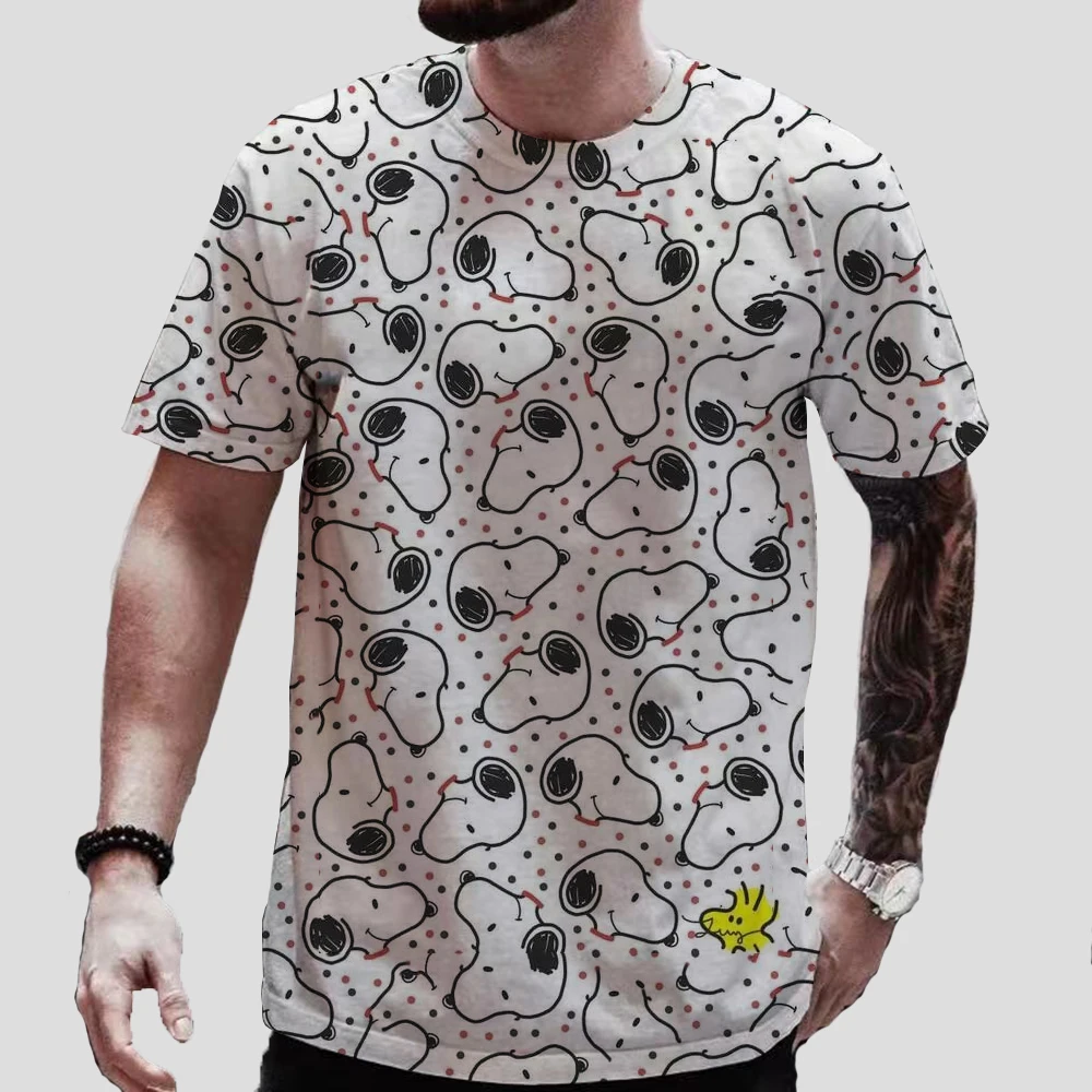 تي شيرت رجالي بأكمام قصيرة ورقبة دائرية ، توبات كبيرة الحجم ، تي شيرت ممتع ، طباعة كلاسيكية على شكل سنوبي ، توب للأطفال