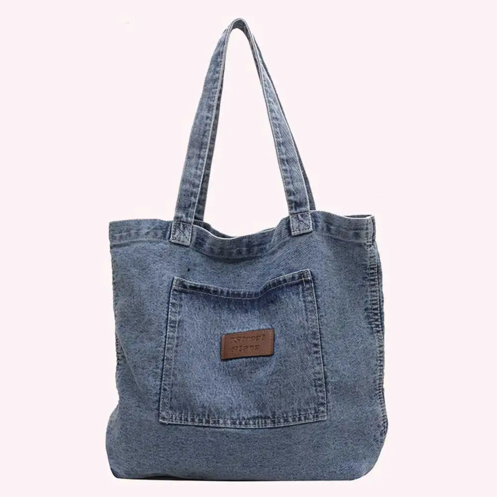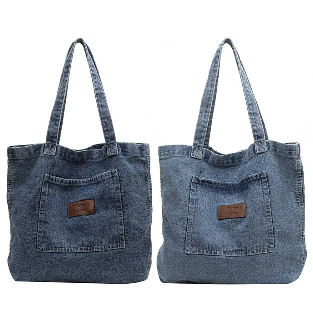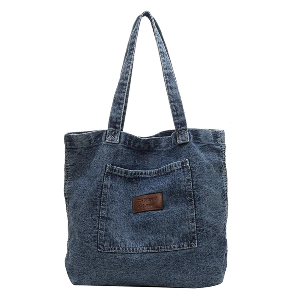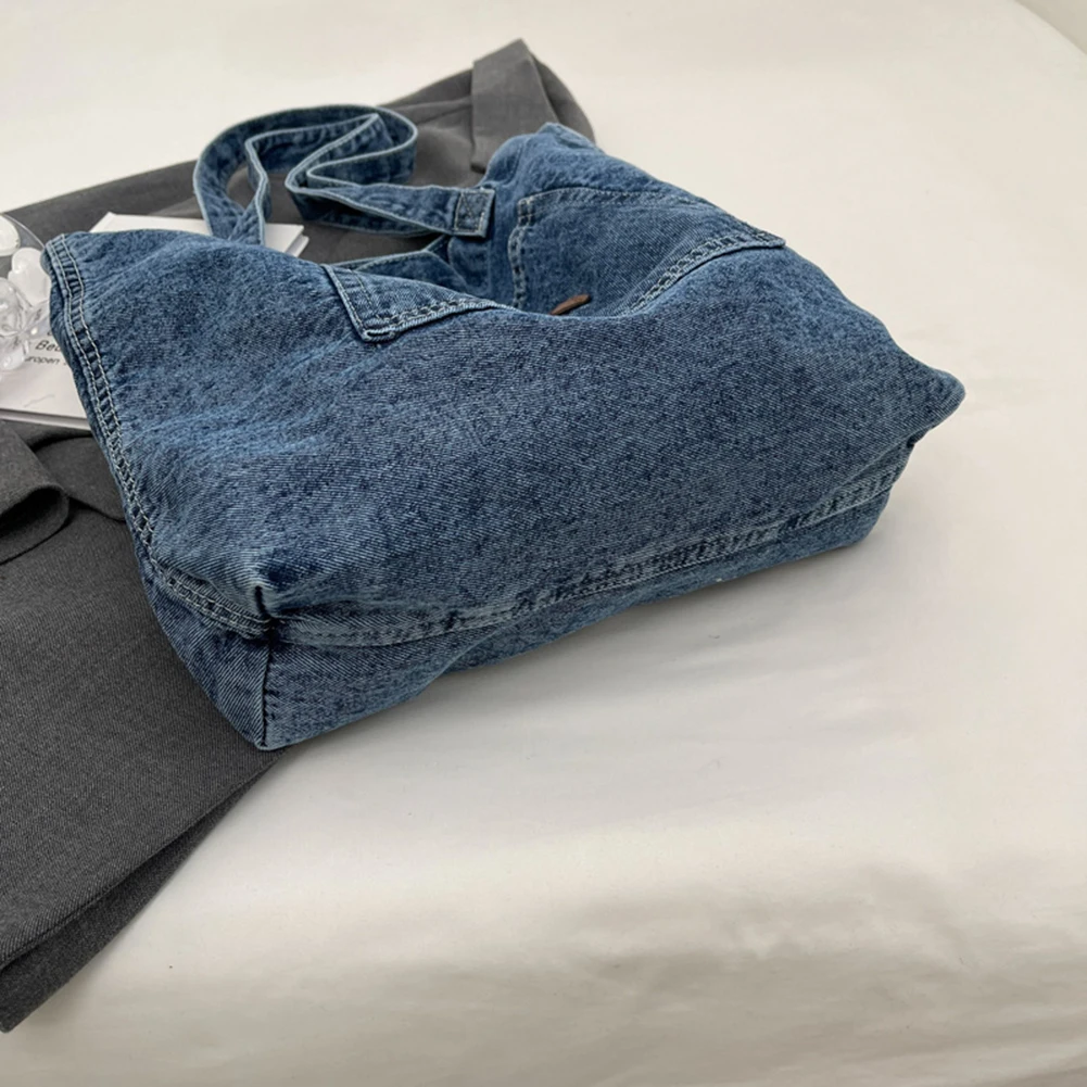 حقيبة كتف دينيم بسعة كبيرة للنساء ، حقيبة يد أحادية اللون ، قابض بسيط ، حقيبة سفر للإناث ، سفر مكتبي ، حقيبة حمل