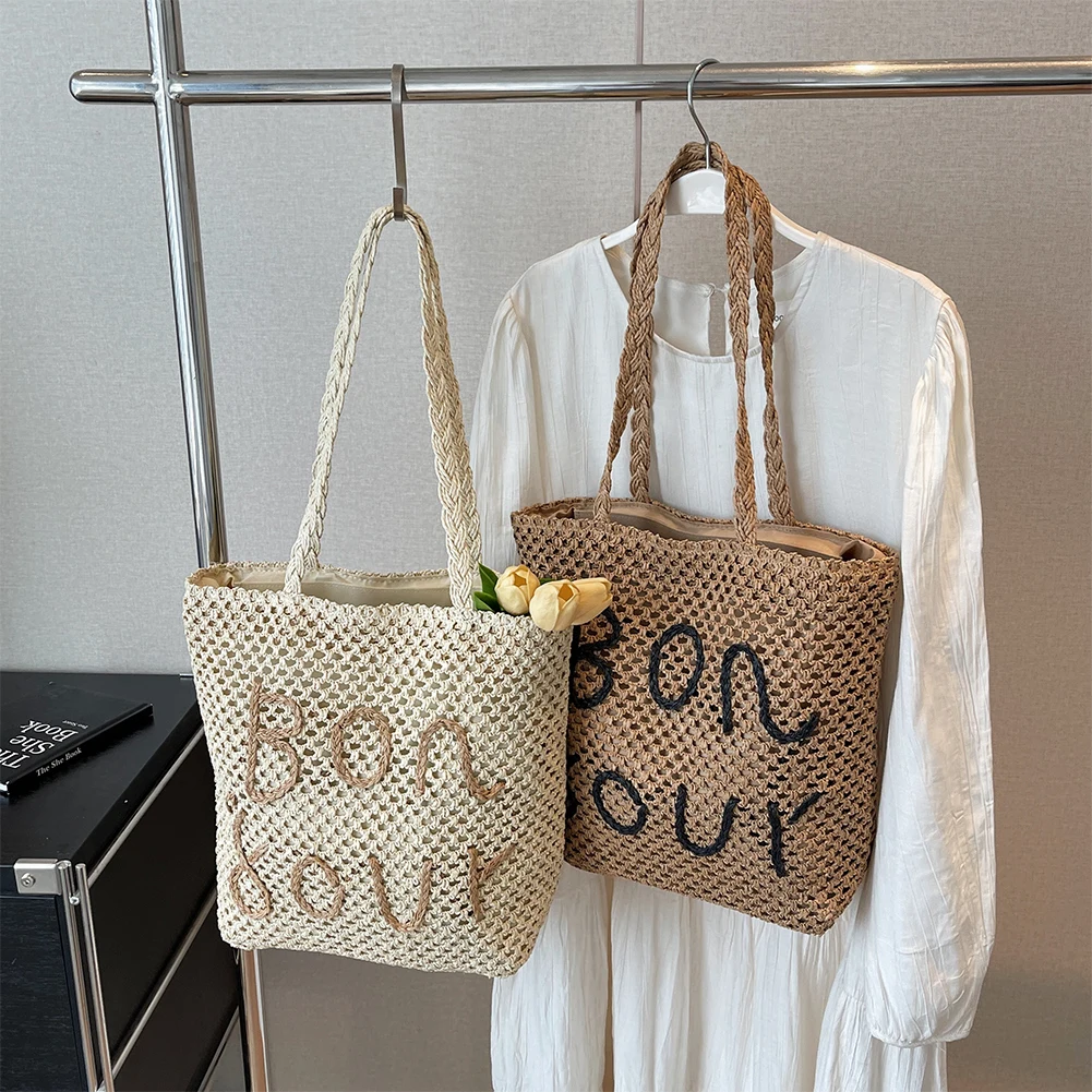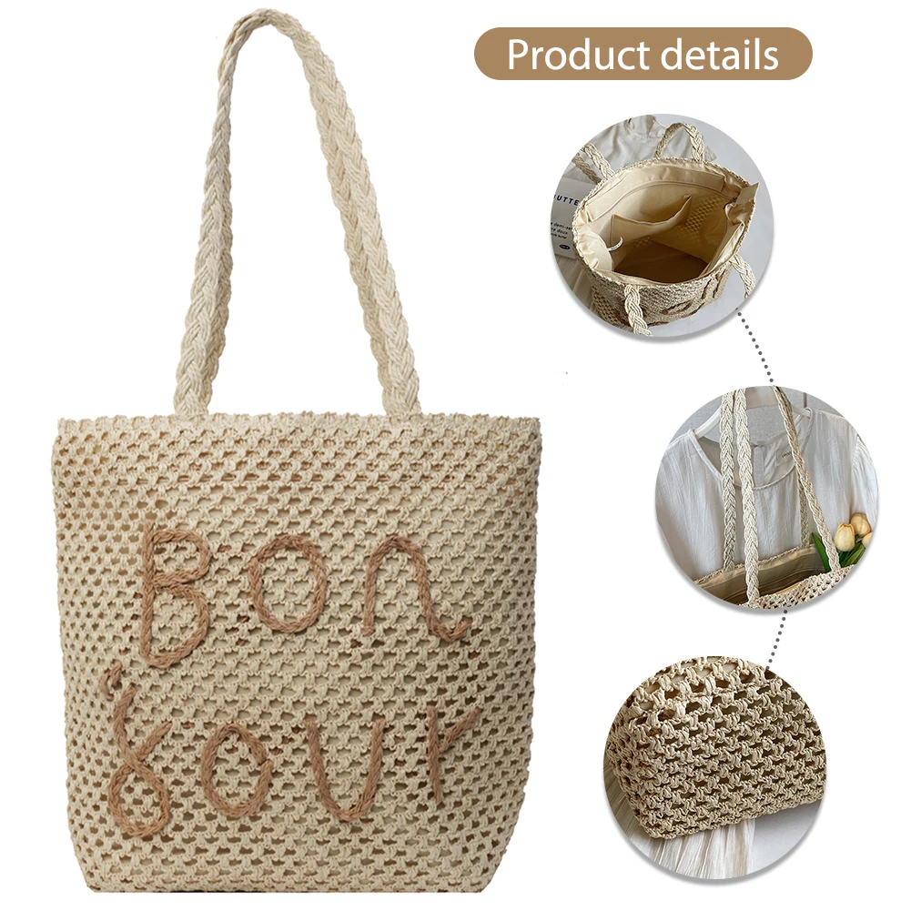 حقيبة يد نسائية بحروف كبيرة سعة كبيرة حقيبة يد مفرغة حقيبة سفر كروشيه متعددة الاستخدامات حقيبة كتف من القش للإناث الميزات: 1. ملحق صيفي أنيق:مصنوعة من قش ورقي متين ، تجمع حقيبة كتف القش هذه بين طول العمر وسهولة الصيانة. تستوعب المناطق الداخلية الواسعة دون عناء الضروريات مثل الهاتف الذكي والمحفظة وأحمر الشفاه والمفاتيح ، وتغليف التطبيق العملي في تصميم أنيق. 2. تنظيم بدون جهد:يضمن التصميم البسيط والأنيق لحمل الحروف لحقيبة اليد تخزين سلعك بأناقة ، مع سحاب عالي الجودة ينزلق بسلاسة ، مما يمنع أي عقبات أو انقطاعات محبطة أثناء أنشطتك اليومية. 3. رفيق متعدد الاستخدامات:سواء كنت تتسوق ، أو في موعد ، أو التنقل ، أو السفر ، أو في إجازة ، أو في حفلة ، أو العمل ، فإن هذه الحقيبة المجوفة تتكيف مع احتياجاتك وتكمل ملابسك ، ضمان أن تبدو مجتمعة في أي مكان. 4. هدية الأناقة:حقيبة القش البسيطة هذه ليست مجرد حقيبة ، بل بيان من الأناقة ، مما يجعلها هدية مثالية لعيد الميلاد ، عيد الحب ، أعياد الميلاد ، عيد الأم ، عيد الشكر ، المناسبات السنوية ، أو أي مناسبة خاصة. إنها الطريقة المثالية لإظهار التقدير للأصدقاء والصديقات والزوجات والأمهات على حد سواء. 5. شعور حلو:تقديم لمسة من الحلاوة والتفكير مع هذه الحقيبة الكاجوال المنسوجة ، هدية تمزج الوظيفة مع الموضة للاحتفال بالنساء في حياتك في أي حدث لا يُنسى.
