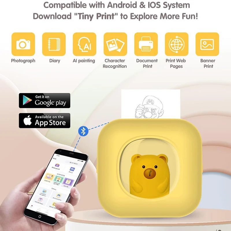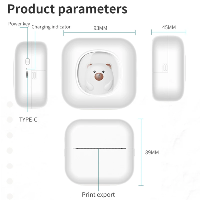 ·Connection mode: Bluetooth connection, heat sensitive ink free black and white printing