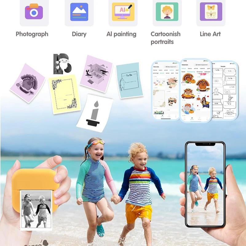 طابعة حرارية عالية الدقة محمولة للأطفال ، لاسلكية ، بلوتوث ، صورة ، جيب ، ملصق ، مدرسة ، طابعة بدون حبر ، أداة تعليمية ،
