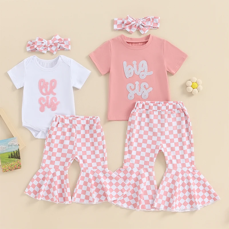 ملابس متطابقة لحديثي الولادة بناتي ، رومبير شقيقة كبيرة وأخت صغيرة ، تي شيرت للطفل الصغير ، طقم بلوزات وسراويل ، ملابس