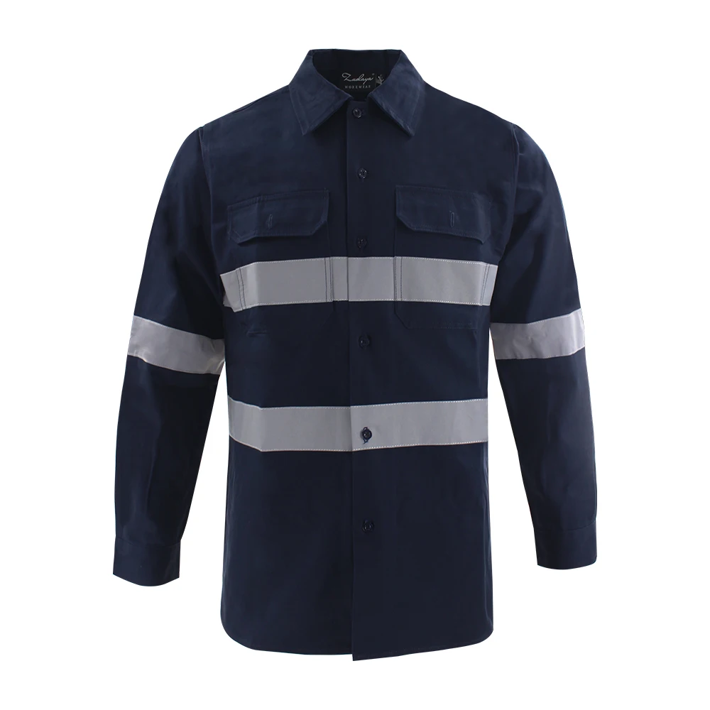 اشتر قميص عمل رجالي من القطن بأكمام طويلة من Hivis للاستخدام الخارجي باللون الأزرق الداكن FG-05L من منتجات أمان من مصنع الصين مباشرة عبر الرابط