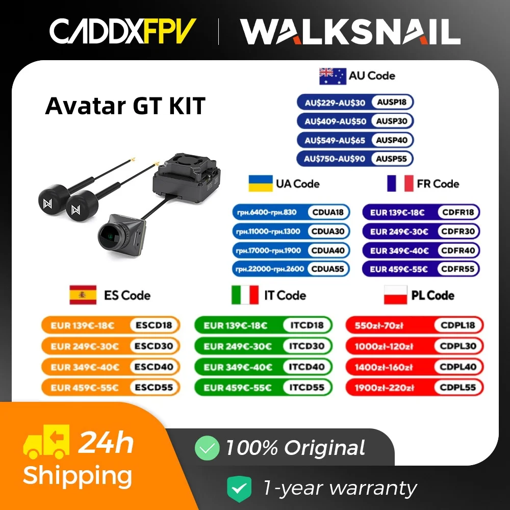 Caddx Walksnail Avatar GT Kit Max 2W VTX Gyroflow 1080P 100fps هوائيات مزدوجة للرؤية الليلية Starvis II مستشعر طويل المدى طائرة بدون طيار Fpv