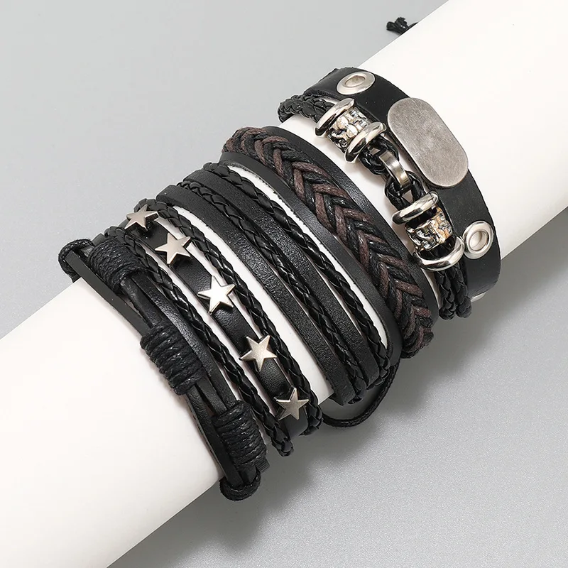 اشتر أساور جلدية منسوجة يدويًا للبيع الساخن 5 قطع/مجموعة إكسسوارات النجوم سوار برشام على طراز الهيب هوب بانك للرجال سحر الموضة من منتجات المجوهرات والنظارات والساعات والإكسسوارات من مصنع الصين مباشرة عبر الرابط