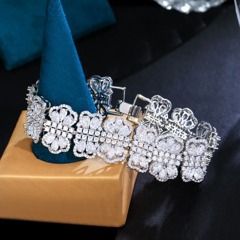 اشتر أساور زفاف فاخرة للغاية مطلية بالفضة مرصعة بالزركون الأبيض بسلسلة كبيرة للنساء وحفلات الخطوبة والمجوهرات والإكسسوارات من منتجات المجوهرات والنظارات والساعات والإكسسوارات من مصنع الصين مباشرة عبر الرابط