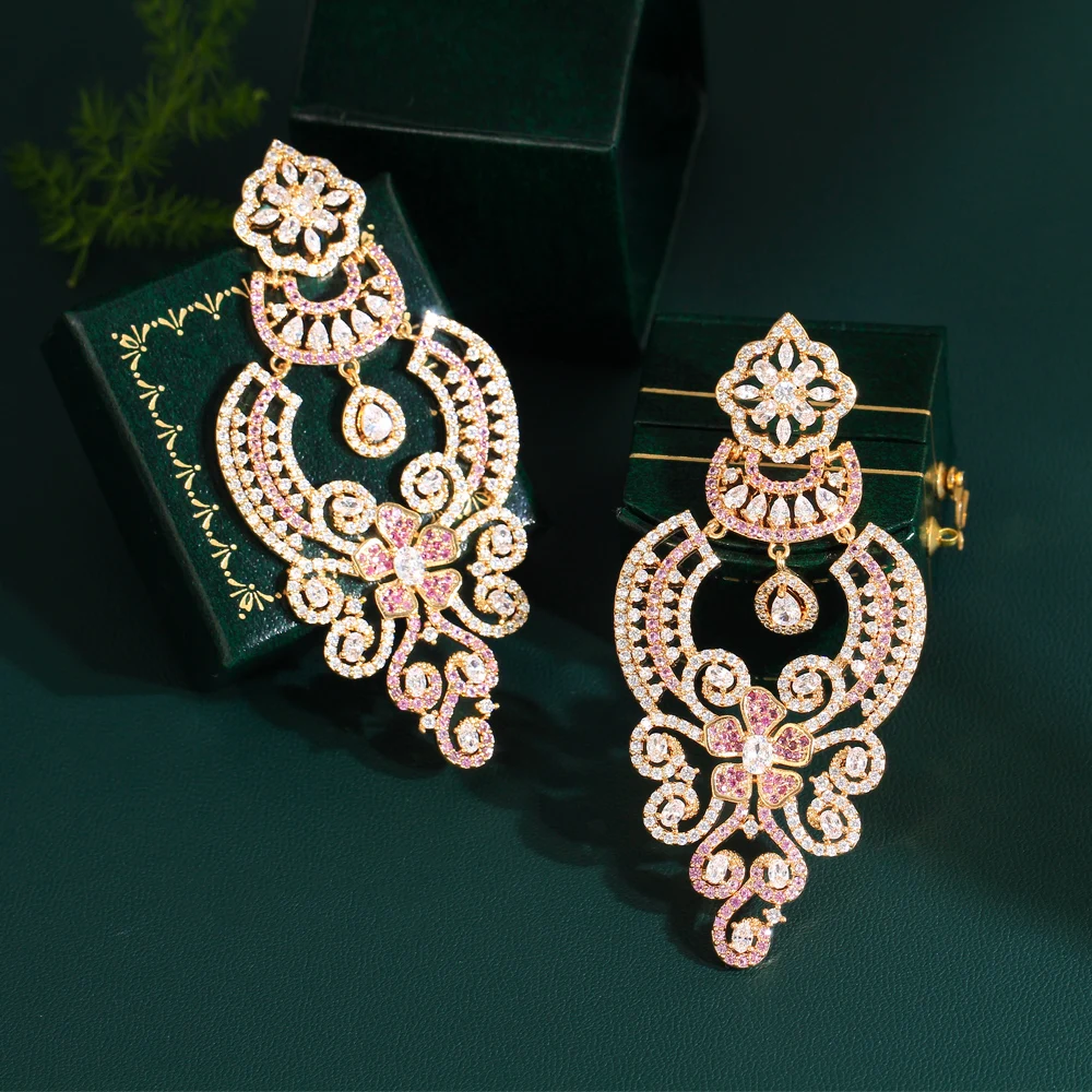 You are currently viewing أقراط طويلة كبيرة من الزركون المكعب باللون الوردي والأحمر الفاخر لعام 2023 للنساء مجوهرات حفلات الزفاف على الطراز العتيق
