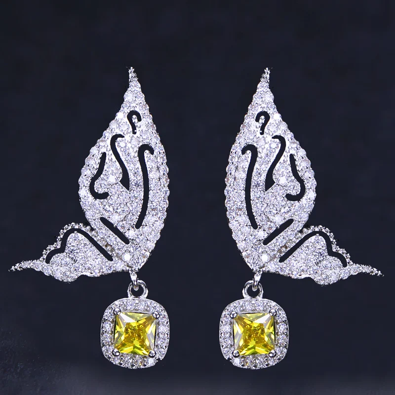 اشتر أقراط متدلية جديدة عصرية من الفضة المطلية بحجر الزركونيا المكعب الأصفر الكبير على شكل فراشة طائرة لطيفة وجميلة للنساء من منتجات المجوهرات والنظارات والساعات والإكسسوارات من مصنع الصين مباشرة عبر الرابط