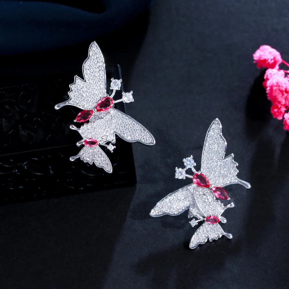 اشتر أقراط متدلية على شكل فراشة مزدوجة أنيقة مرصعة بأحجار الزركونيا الحمراء المكعبة للنساء وإكسسوارات المجوهرات العصرية من منتجات المجوهرات والنظارات والساعات والإكسسوارات من مصنع الصين مباشرة عبر الرابط