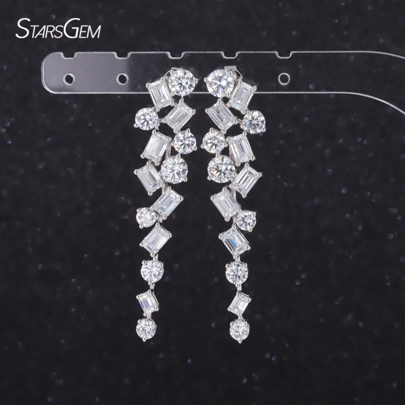 اشتر أقراط متدلية من Starsgem Fine Jewelry من الذهب الأبيض عيار 18 قيراطًا مرصعة بالألماس المويسانيت الفاخر لحفلات الزفاف أقراط ساحرة من منتجات المجوهرات والنظارات والساعات والإكسسوارات من مصنع الصين مباشرة عبر الرابط