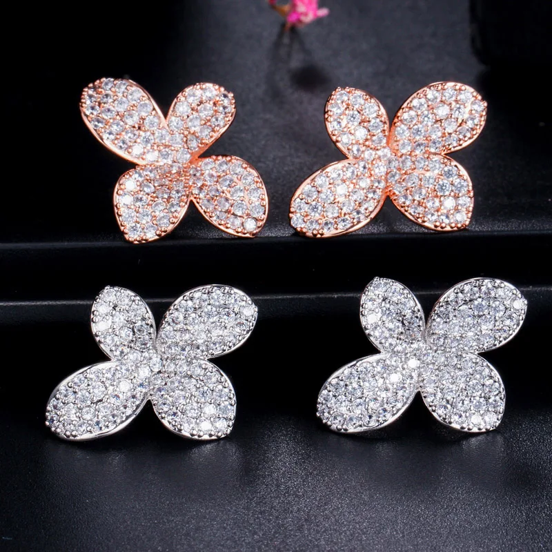 اشتر أقراط مزينة بزهور الزركون المكعبة المطلية بالذهب الوردي بتصميم أنيق للنساء، هدية للحفلات اليومية من منتجات المجوهرات والنظارات والساعات والإكسسوارات من مصنع الصين مباشرة عبر الرابط