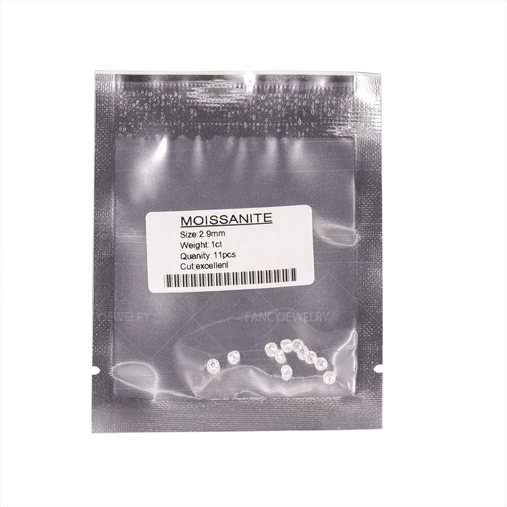 حجر مويسانيت دائري لامع مقطوع باللون الأبيض مرصع بالألماس 0.8 مم – 3.0 مم 1 قيراط لكل كيس مويسانيت صغير سائب
