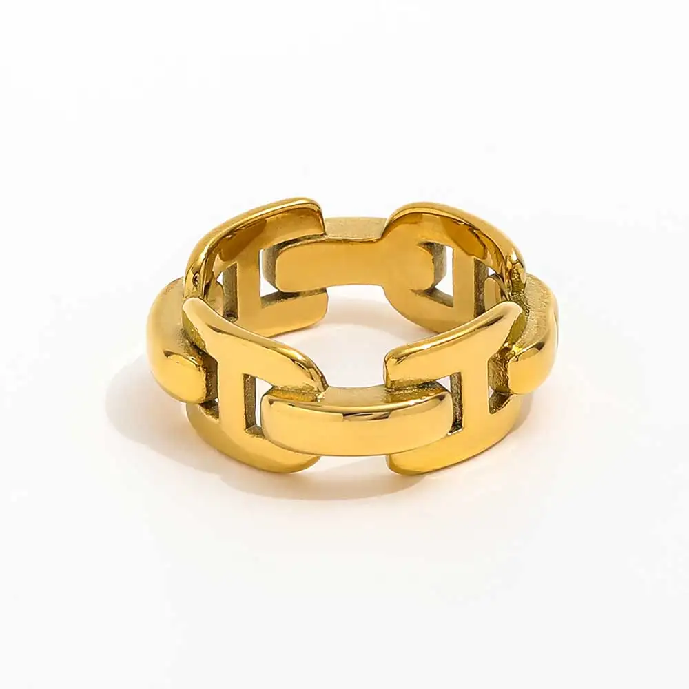 اشتر خاتم من الفولاذ المقاوم للصدأ عالي الجودة من مادة PVD عيار 18 قيراطًا مع سلسلة ربط عصرية مرصعة بالخلود للجنسين للحفلات والمجوهرات النسائية ODM من منتجات المجوهرات والنظارات والساعات والإكسسوارات من مصنع الصين مباشرة عبر الرابط