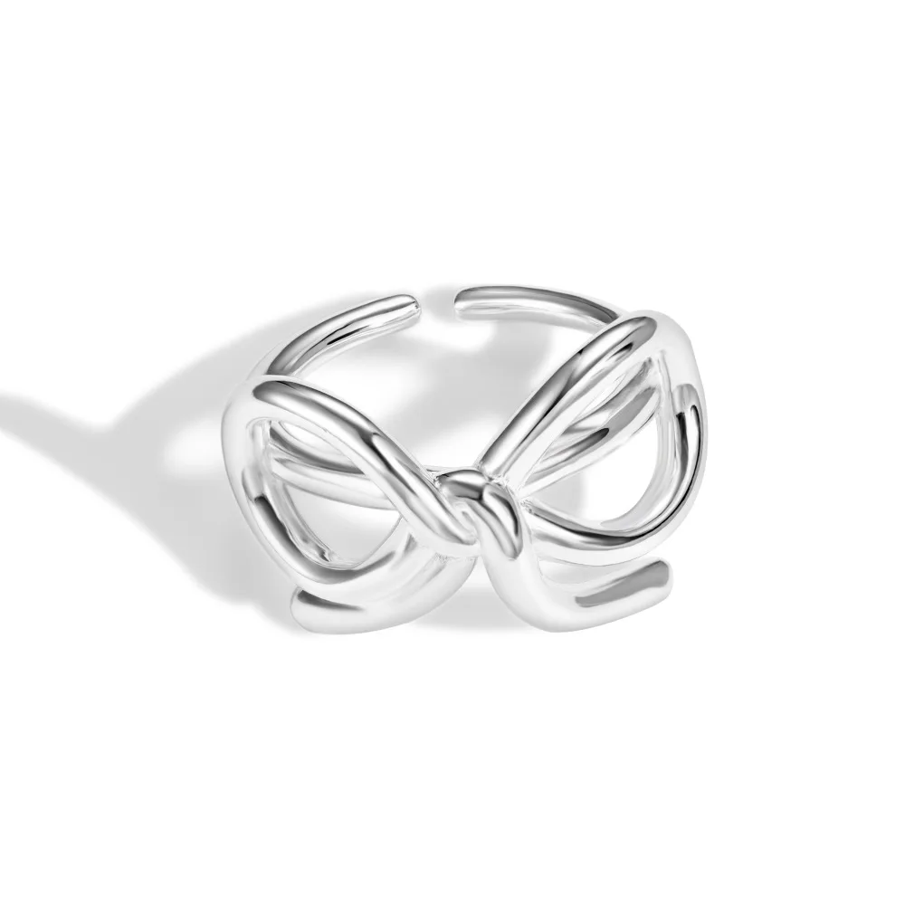 اشتر خواتم Dylam Geometric Simplicity Design S925 مطلية بالروديوم الفضي بتصميم أنيق للنساء على شكل عقدة فيونكة دقيقة مفتوحة وقابلة للتعديل من منتجات المجوهرات والنظارات والساعات والإكسسوارات من مصنع الصين مباشرة عبر الرابط