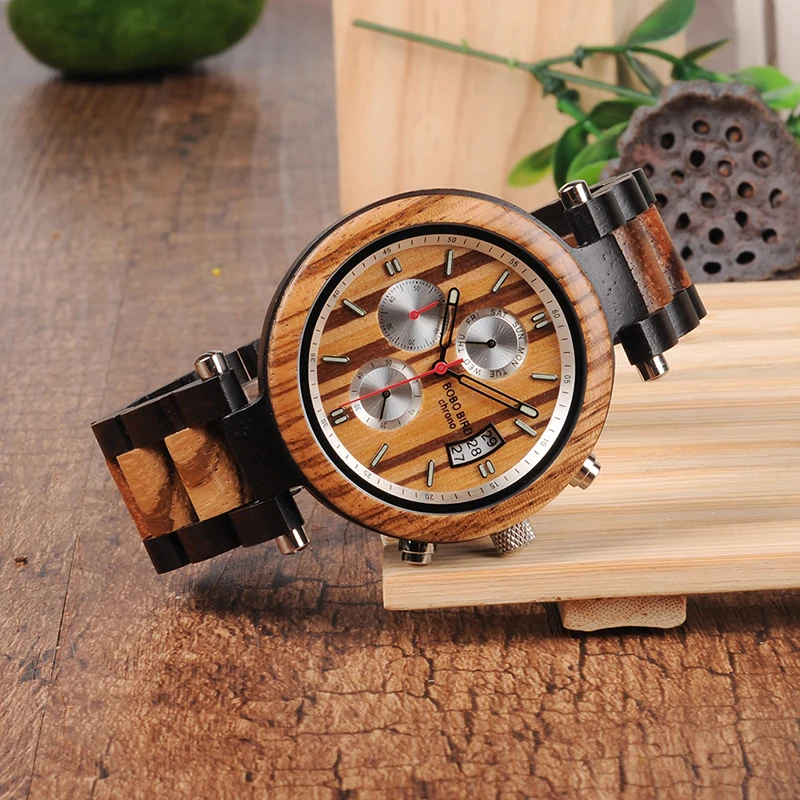 اشتر ساعة كرونوغراف خشبية فاخرة للرجال من خشب الزيبرا ساعة عصرية بعرض حزام 22 مم وشاشة عرض قرص المؤشر من منتجات المجوهرات والنظارات والساعات والإكسسوارات من مصنع الصين مباشرة عبر الرابط