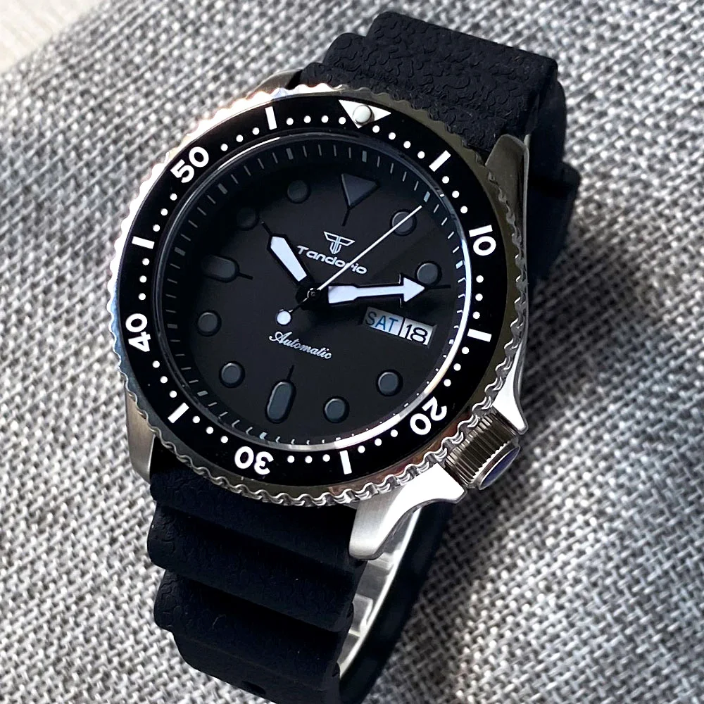 ساعة يد تاندوريو NH36A للرجال للغوص لمسافة 200 متر بحزام سيليكون SKX Mod ساعة ميكانيكية فاخرة بحلقة فصل من الياقوت المسطح ساعة رياضية
