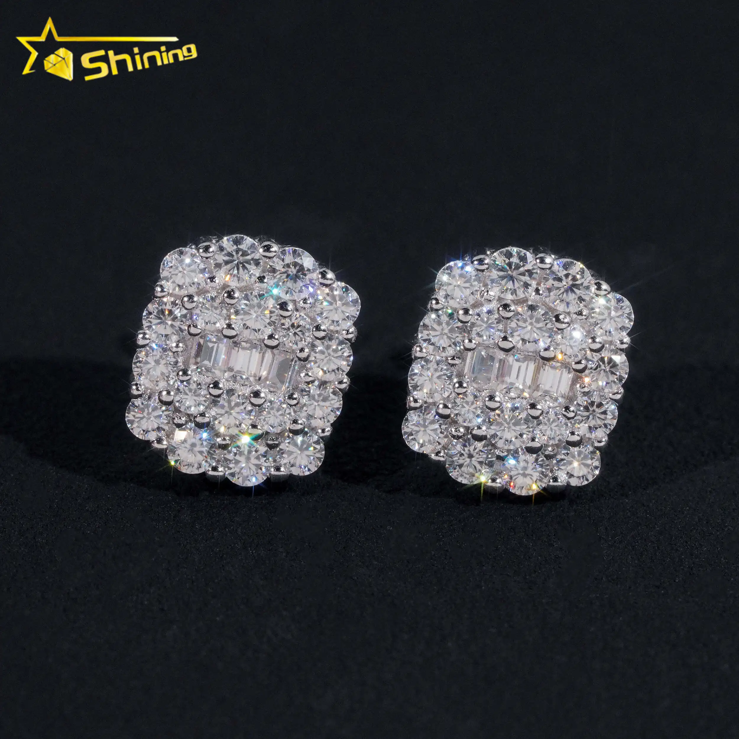 سعر الترويج Pass Diamond Tester GRA أقراط من الفضة عيار 925 مرصعة بالمجوهرات من حجر الباجيت والمويسانيت