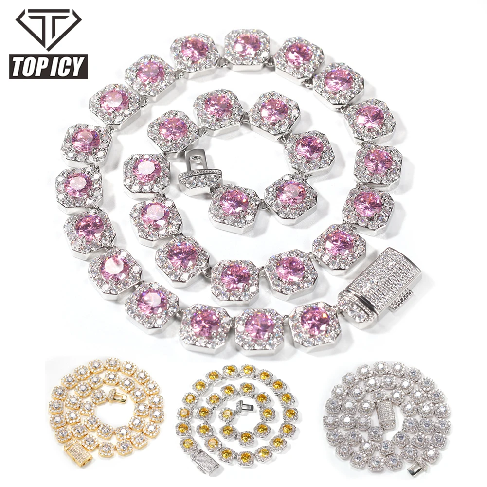 اشتر سلسلة تنس TOP ICY مقاس 13 مم من حجر الزركونيوم الكبير باللون الوردي والأصفر وسلسلة الهيب هوب الملونة باللون الجليدي اللامع وسلسلة الألوان المختلطة والمجوهرات الوردية الفاخرة من منتجات المجوهرات والنظارات والساعات والإكسسوارات من مصنع الصين مباشرة عبر الرابط