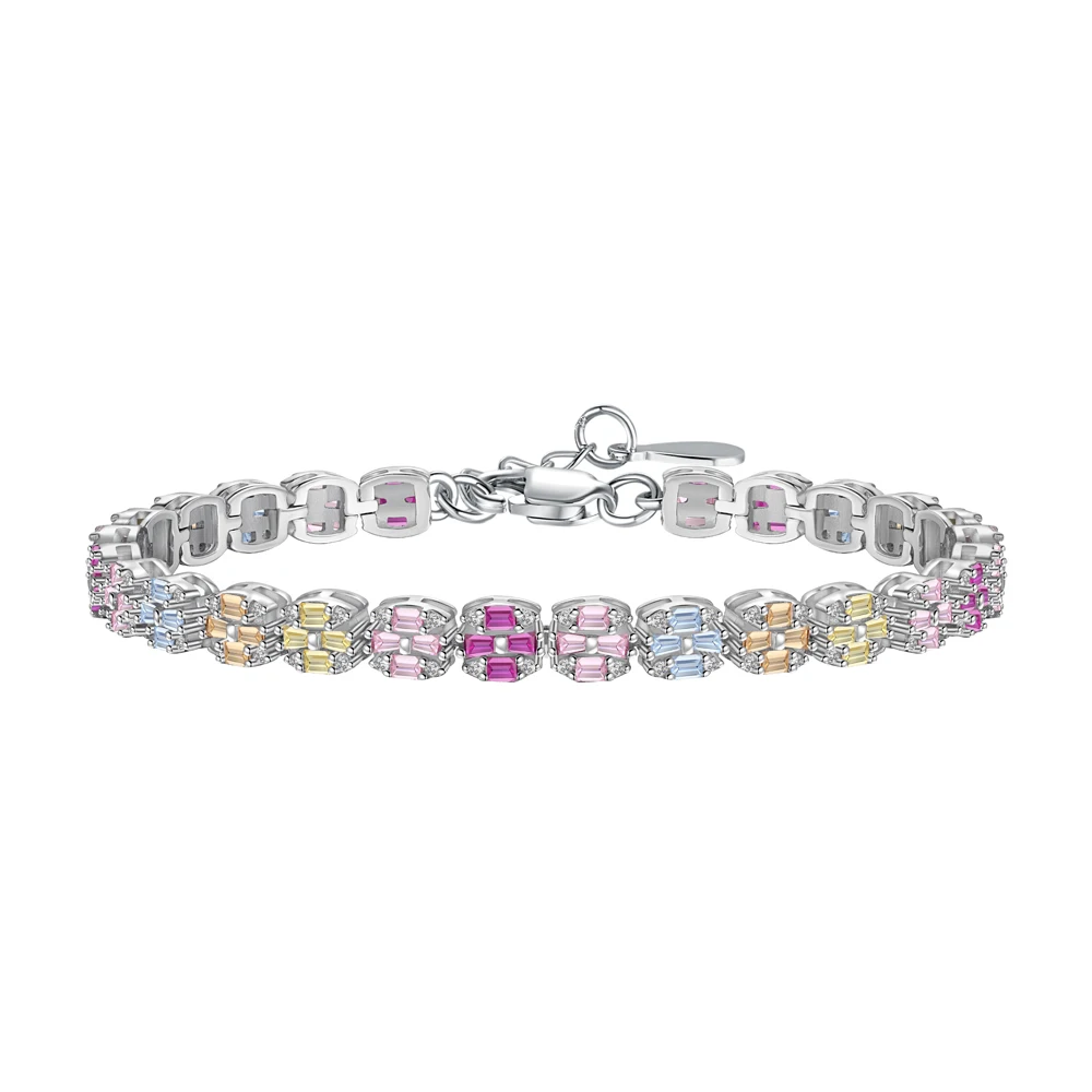 اشتر سوار تنس Dylam Iced Out Square Rainbow Mixed Cuts من الحجر الوردي للنساء والرجال من الفضة الإسترلينية عيار 925 مرصع بالألماس عيار 5A من منتجات المجوهرات والنظارات والساعات والإكسسوارات من مصنع الصين مباشرة عبر الرابط