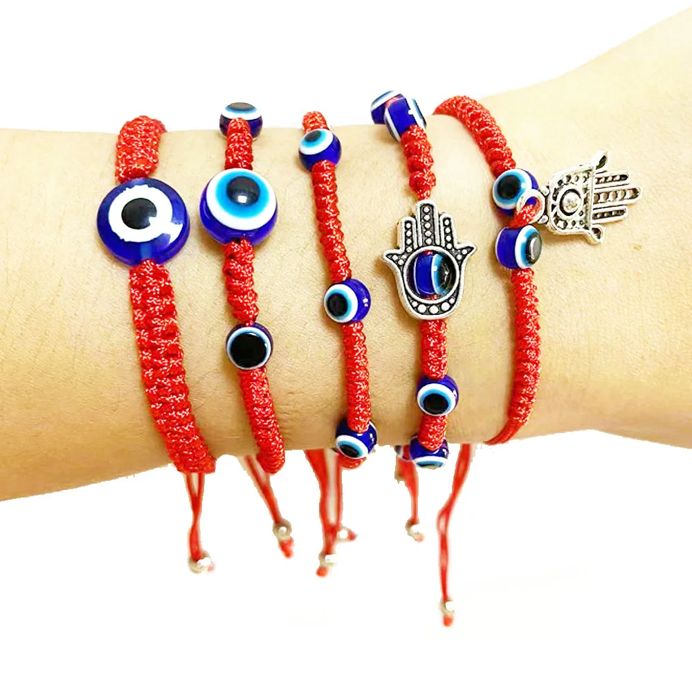 اشتر سوار رجالي مصنوع يدويًا من الحمسة والعين الشريرة، سوار منسوج بحبل أحمر محظوظ قابل للتعديل مع عيون شريرة، مورد من منتجات المجوهرات والنظارات والساعات والإكسسوارات من مصنع الصين مباشرة عبر الرابط