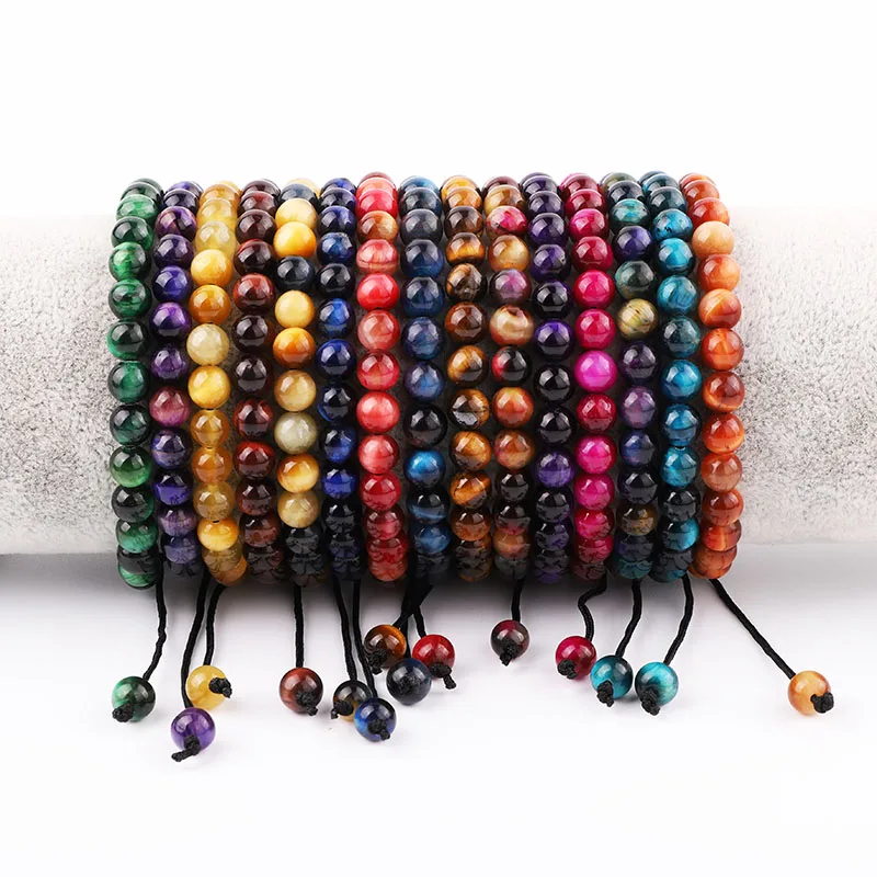 اشتر سوار زوجي من حبات حجر عين النمر الملونة الطبيعية مقاس 6/8 مم مع حبل مضفر قابل للتعديل من الماكراميه للرجال والنساء من منتجات المجوهرات والنظارات والساعات والإكسسوارات من مصنع الصين مباشرة عبر الرابط