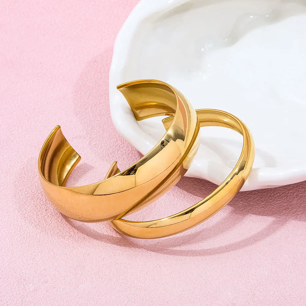 اشتر سوار نسائي من الفولاذ المقاوم للصدأ بتصميم عصري غير منتظم بسطح محدب للبيع بالجملة مطلي بالذهب عيار 18 قيراطًا من مادة PVD من منتجات المجوهرات والنظارات والساعات والإكسسوارات من مصنع الصين مباشرة عبر الرابط