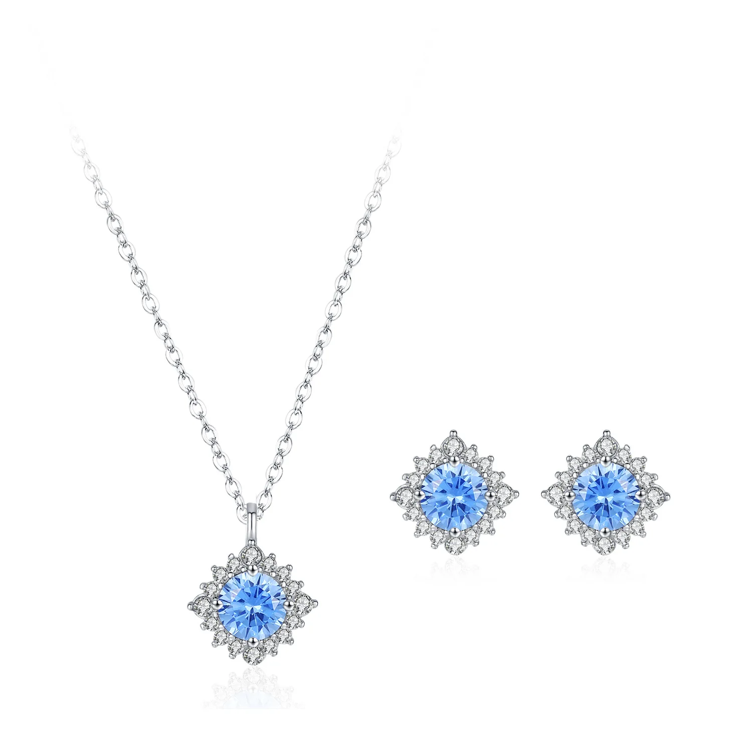 اشتر طقم مجوهرات فاخر خفيف الوزن من حجر الأكوامارين من الفضة الإسترلينية عيار 925 مع قلادة من عباد الشمس والزركون الأزرق وأقراط من قطعتين للنساء من منتجات المجوهرات والنظارات والساعات والإكسسوارات من مصنع الصين مباشرة عبر الرابط