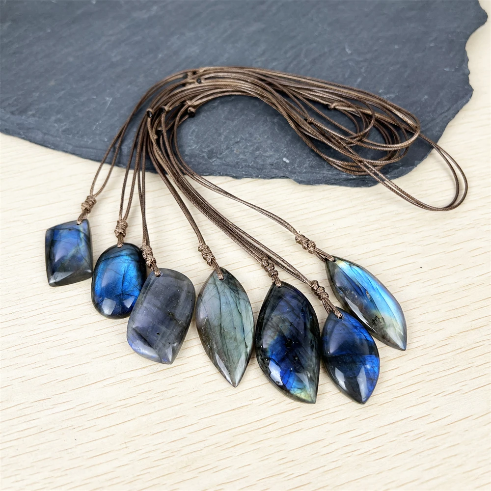 اشتر قلادة حبل شمعي من الأحجار الكريمة الروحية من الشركة المصنعة، قلادات من الكريستال المصقول باللون الأزرق من لابرادوريت فلاش من منتجات المجوهرات والنظارات والساعات والإكسسوارات من مصنع الصين مباشرة عبر الرابط