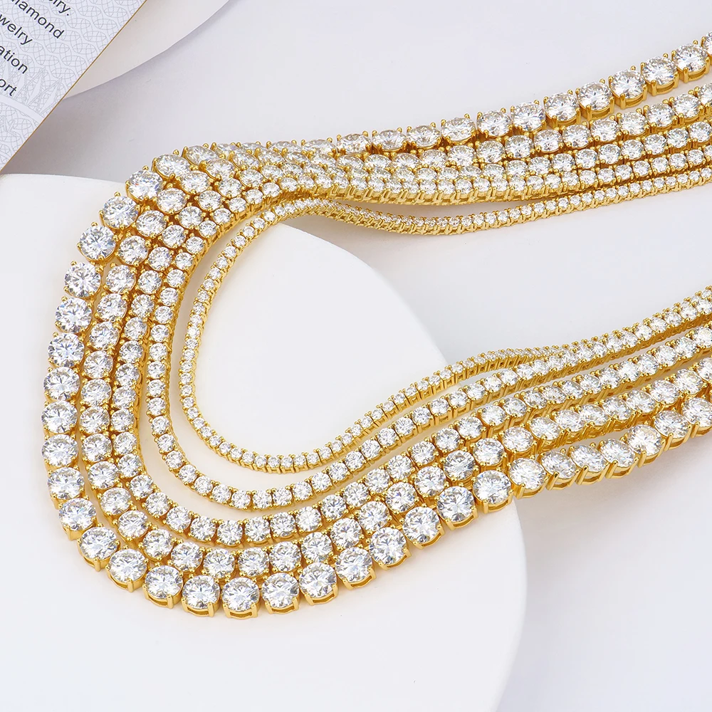 اشتر قلادة سلسلة تنس من الفضة الإسترلينية عيار 925 مطلية بالذهب الأصفر ومغطاة بالثلج بسمك 2/3/4/5/6 مم من الماس والموسانيت والمويسانيت من منتجات المجوهرات والنظارات والساعات والإكسسوارات من مصنع الصين مباشرة عبر الرابط