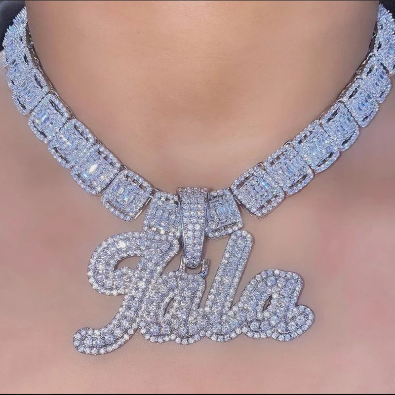 اشتر قلادة صغيرة مرصعة بالزركونيوم مرصعة بأحرف متصلة بلونين باللون الأرجواني على شكل قلادة على شكل باجيت وسلسلة من الزركون المخصص لحفلات الزفاف من منتجات المجوهرات والنظارات والساعات والإكسسوارات من مصنع الصين مباشرة عبر الرابط