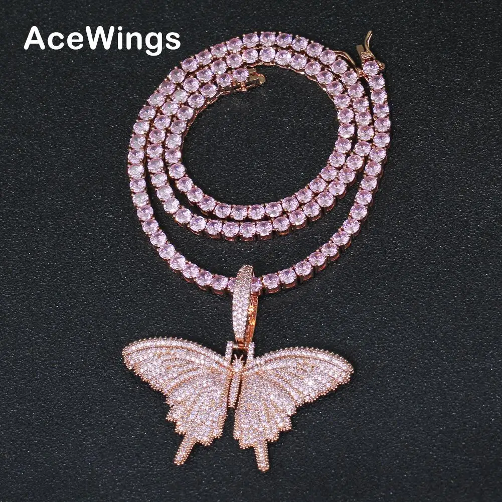 اشتر قلادة فراشة من الزركون الوردي من الذهب الوردي CN165، سلسلة تنس، قلادة هيب هوب، هدية مجوهرات للحفلات من منتجات المجوهرات والنظارات والساعات والإكسسوارات من مصنع الصين مباشرة عبر الرابط