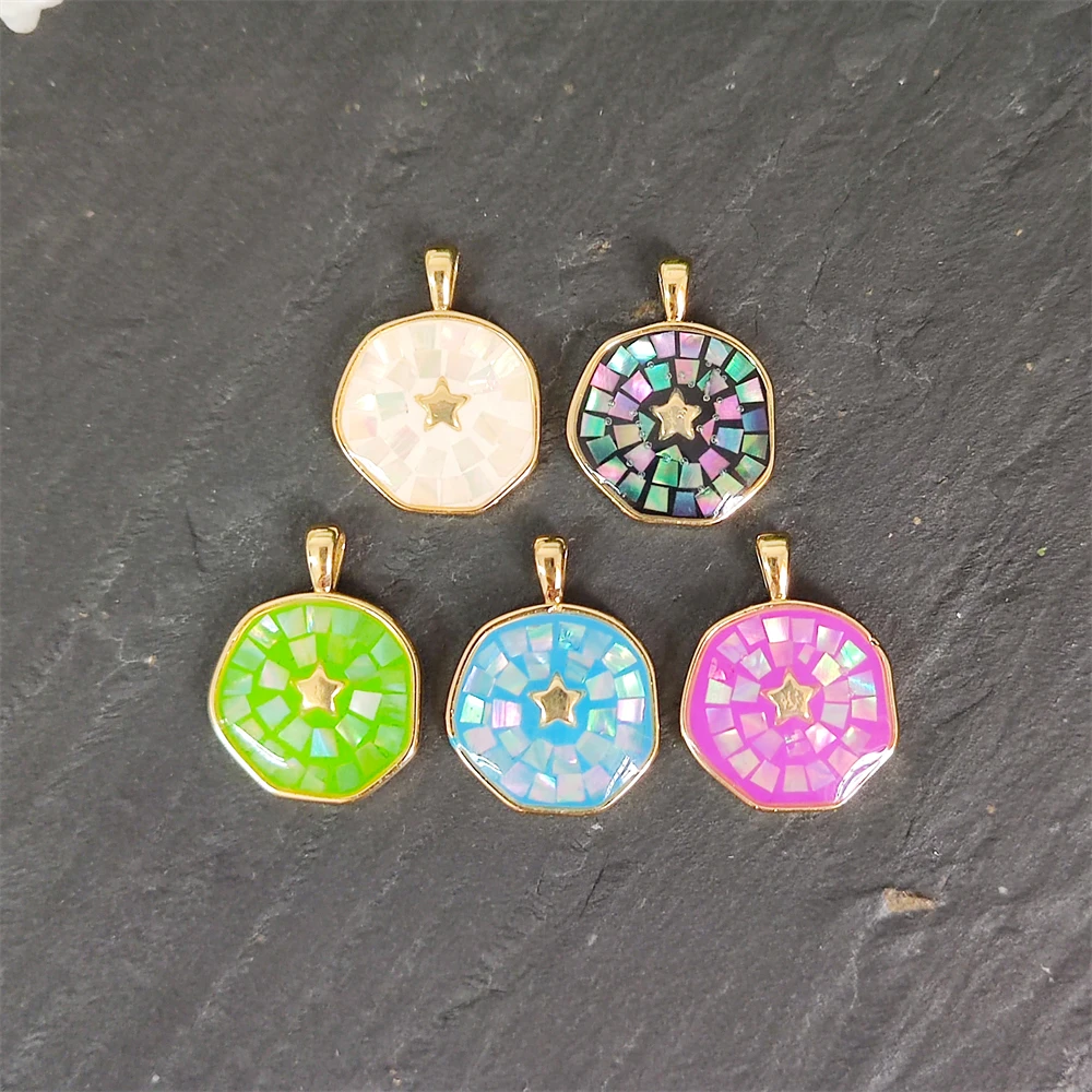 اشتر قلادة مصنوعة يدويًا من عرق اللؤلؤ الملون باللون الدائري المسطح مع قلادة مطلية بالذهب بنمط نجمة من المجوهرات المخصصة للبيع بالجملة من منتجات المجوهرات والنظارات والساعات والإكسسوارات من مصنع الصين مباشرة عبر الرابط