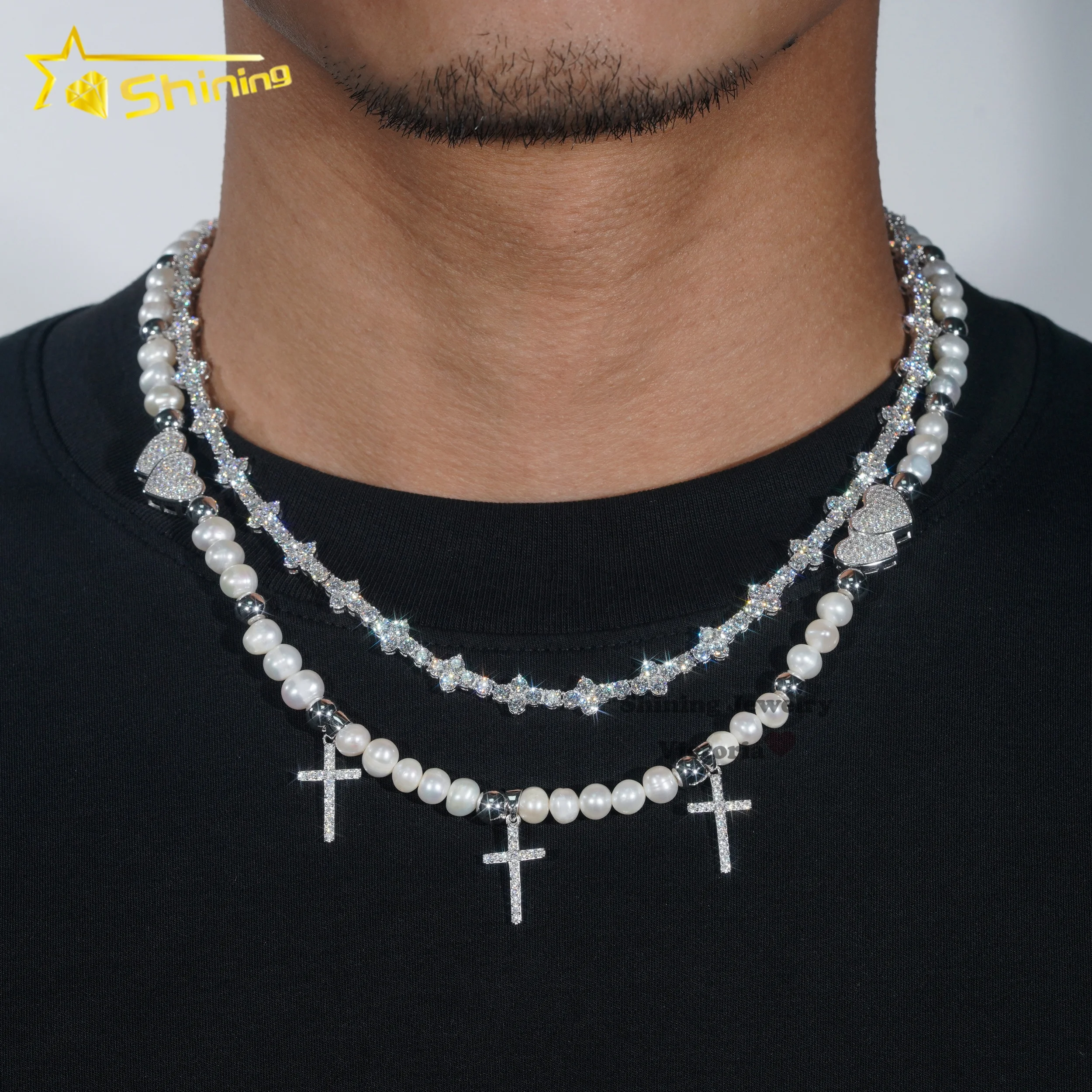 اشتر قلادة من الفضة عيار 925 مرصعة بالألماس من مجموعة الهيب هوب من VVS، قلادة من اللؤلؤ الموزانيت، قلادة على شكل سلسلة تنس من منتجات المجوهرات والنظارات والساعات والإكسسوارات من مصنع الصين مباشرة عبر الرابط