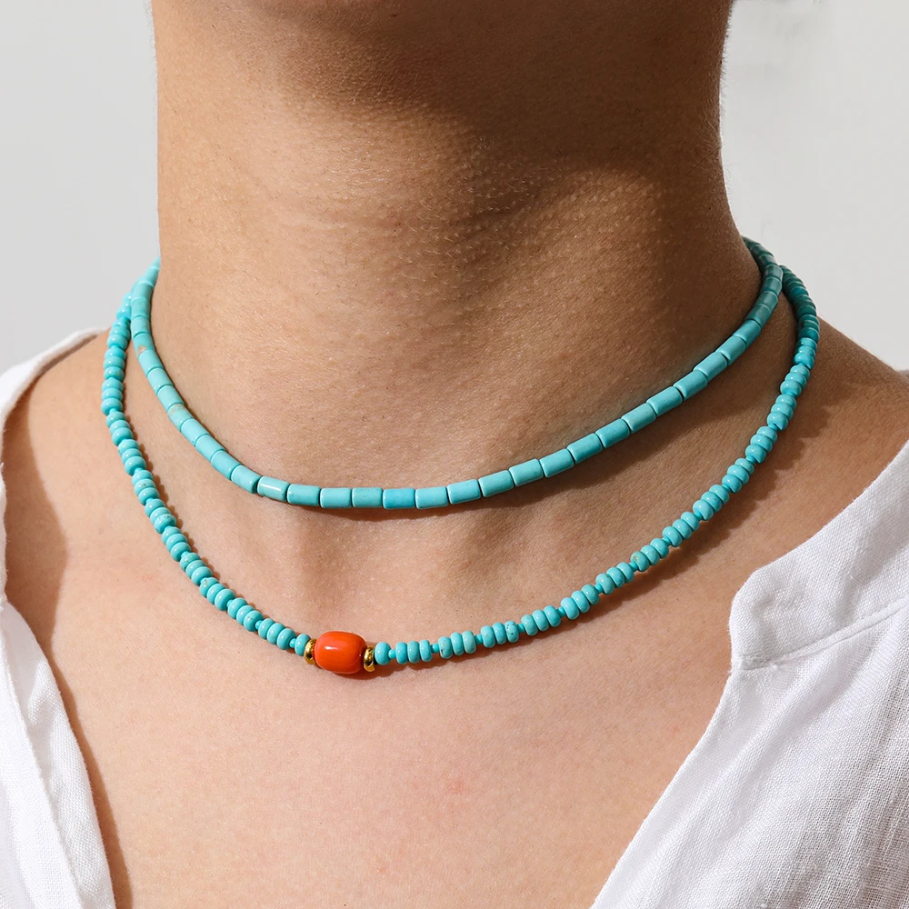 اشتر قلادة من الفولاذ المقاوم للصدأ مطلية بالذهب عيار 18 قيراطًا من JOOLIM، سلاسل حمراء من الحجر الطبيعي والفيروز مضادة للحساسية، هدايا حفلات الصيف من منتجات المجوهرات والنظارات والساعات والإكسسوارات من مصنع الصين مباشرة عبر الرابط