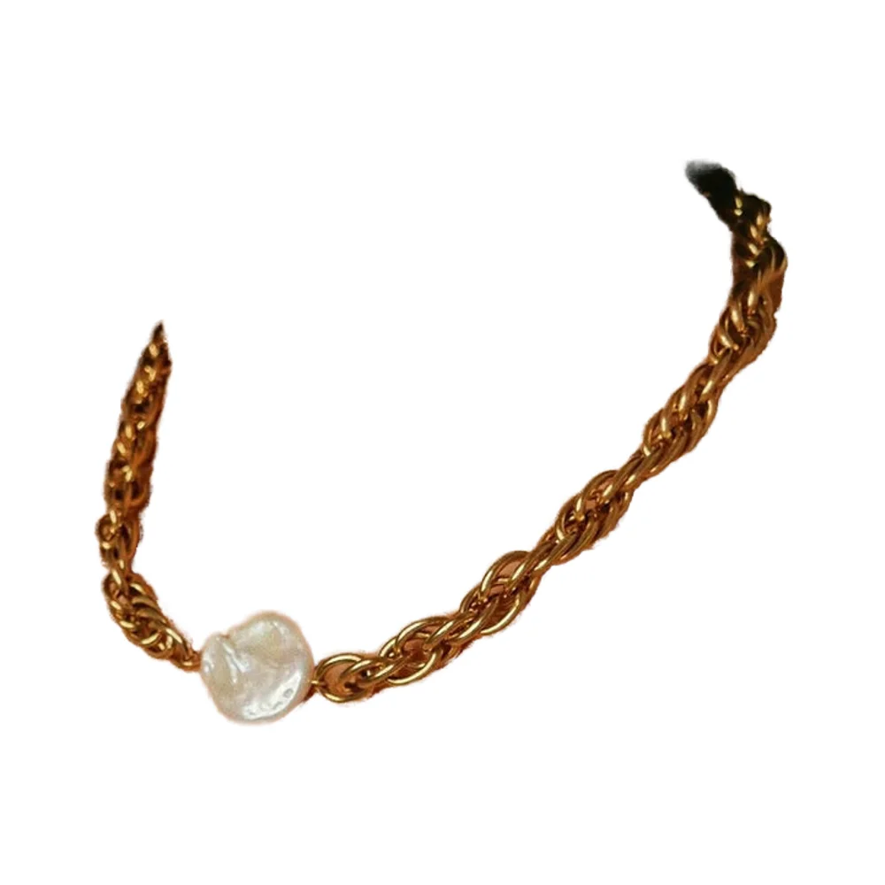 اشتر قلادة من اللؤلؤ المسطح من الذهب عيار 18 قيراطًا بتصميم جديد، سلسلة من الفولاذ المقاوم للصدأ ملتوية بشكل سميك، هدية مقاومة للماء من منتجات المجوهرات والنظارات والساعات والإكسسوارات من مصنع الصين مباشرة عبر الرابط