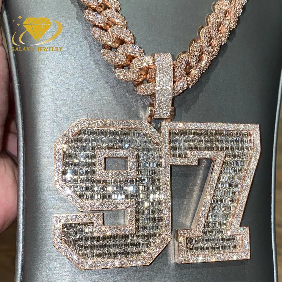قلادة مويسانيت مخصصة من مجوهرات الهيب هوب للرجال مصنوعة من الفضة الإسترلينية عيار 925 مع قلادة مويسانيت مرصعة بالألماس