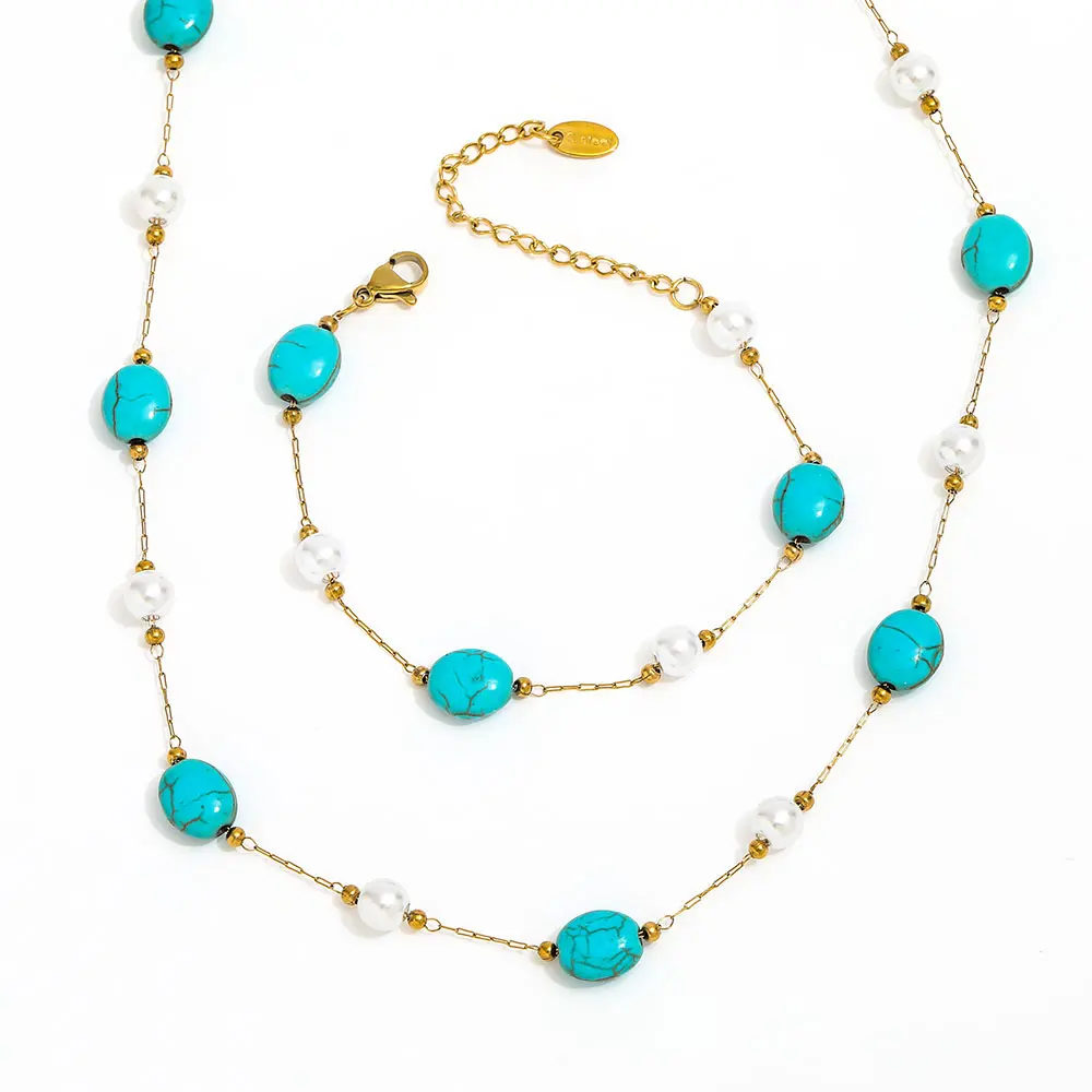 اشتر مجموعة أساور جوليم من الفولاذ المقاوم للصدأ مطلية بالذهب عيار 18 قيراطًا مرصعة باللؤلؤ المقلد باللون الأزرق الفيروزي من منتجات المجوهرات والنظارات والساعات والإكسسوارات من مصنع الصين مباشرة عبر الرابط