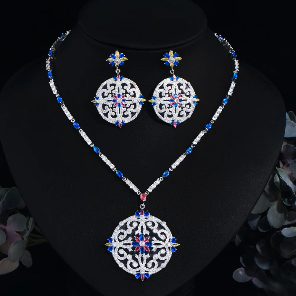 اشتر مجموعة مجوهرات زفاف عتيقة متعددة الألوان من الزركون المكعب، قلادة كبيرة متدلية طويلة وأقراط، مجموعة مجوهرات زفاف من منتجات المجوهرات والنظارات والساعات والإكسسوارات من مصنع الصين مباشرة عبر الرابط