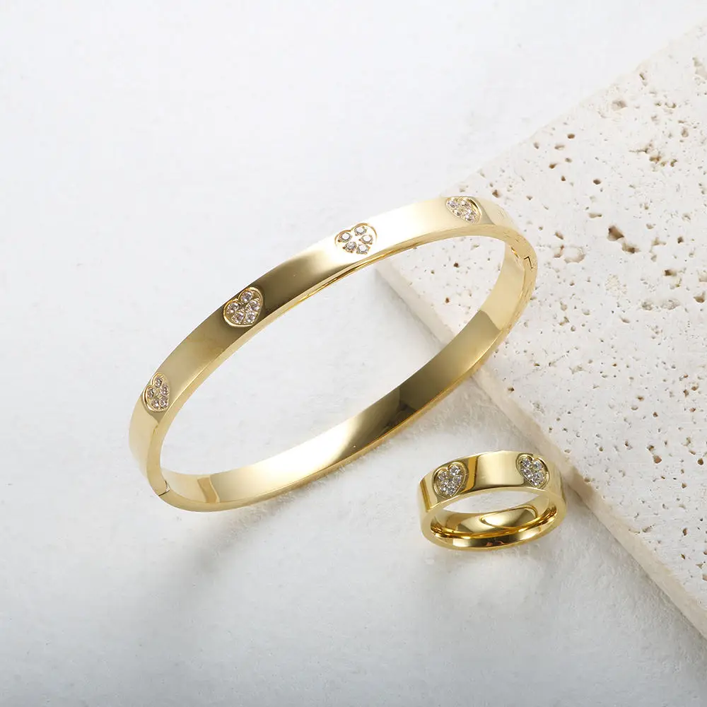 اشتر مجوهرات عالية الجودة من الفولاذ المقاوم للصدأ مطلية بالذهب عيار 18 قيراطًا خالية من التشويه ومقاومة للماء سوار على شكل قلب من الزركون المكعب للنساء من منتجات المجوهرات والنظارات والساعات والإكسسوارات من مصنع الصين مباشرة عبر الرابط