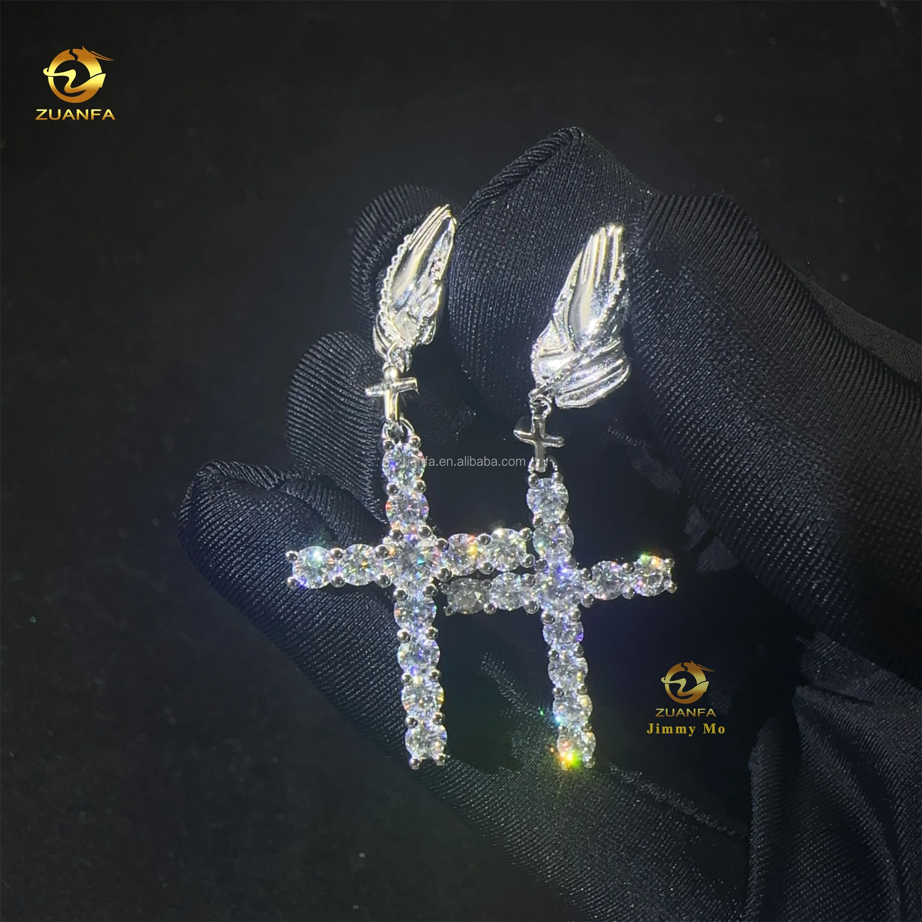اشتر مخزون بالجملة شحن مباشر مطلي بالروديوم 925 فضي سادة أقراط متدلية على شكل صليب من الماس على شكل هيب هوب مويسانيت للرجال من منتجات المجوهرات والنظارات والساعات والإكسسوارات من مصنع الصين مباشرة عبر الرابط