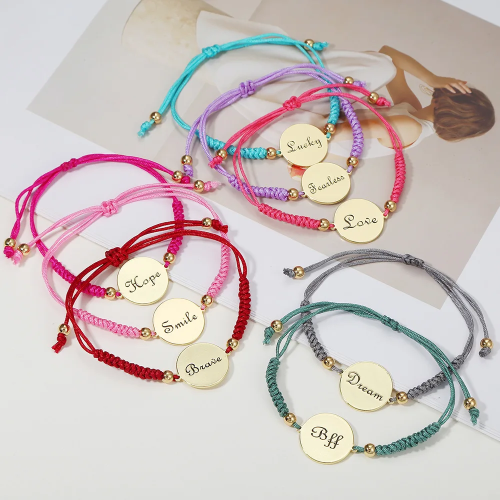اشتر مصنع الفولاذ المقاوم للصدأ الفضة الذهب الوردي 18 قيراط الذهب قرص دائري سحر عقدة ماكرام حبل الحبل أساور شعار شخصي سوار من منتجات المجوهرات والنظارات والساعات والإكسسوارات من مصنع الصين مباشرة عبر الرابط