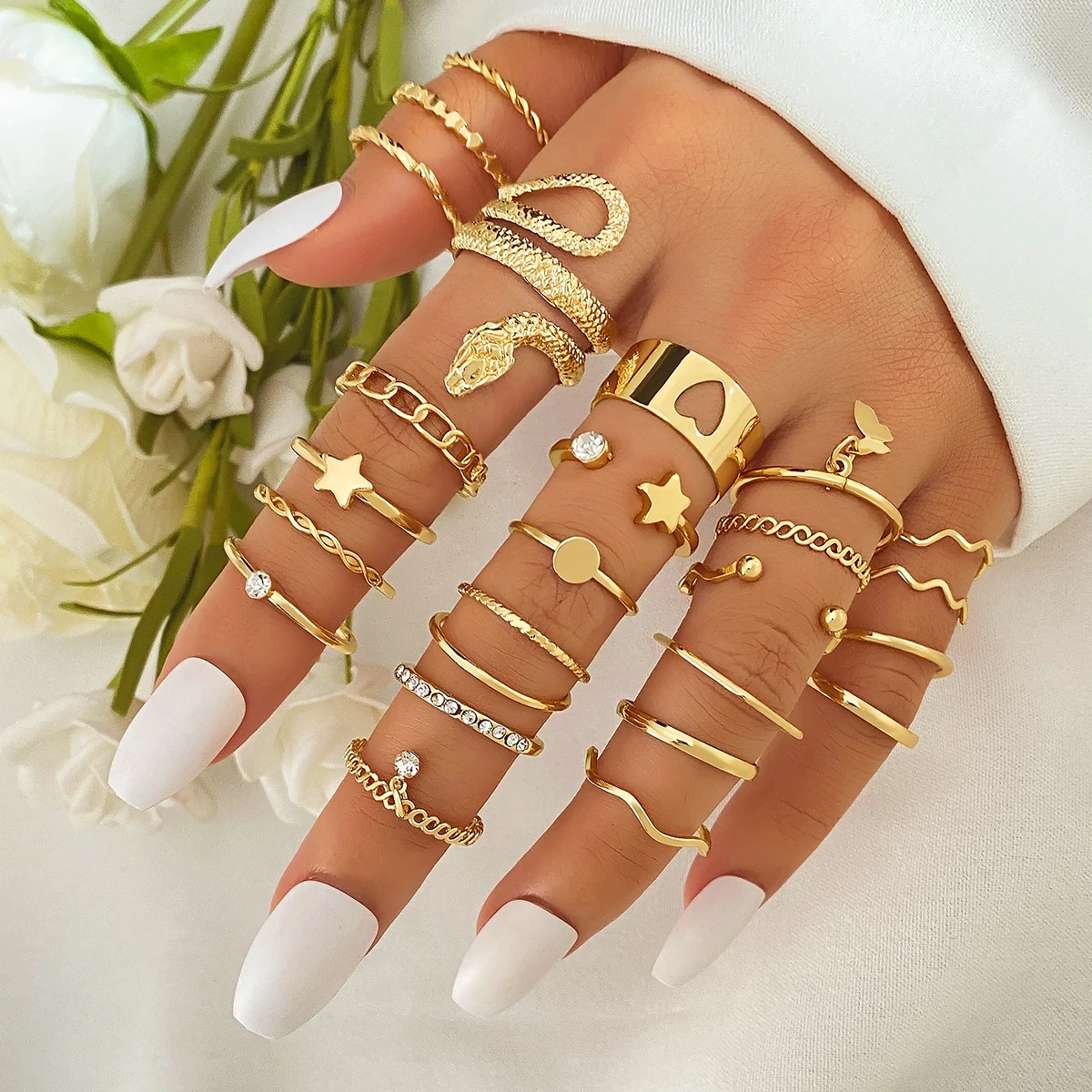 اشتر 24 قطعة/مجموعة خاتم إصبع مفصل الثعبان العصري الجديد المطلي بالذهب مجموعة خواتم نسائية مكتنزة هندسية كبيرة الحجم من الكريستال البانك هدية مجوهرات من منتجات المجوهرات والنظارات والساعات والإكسسوارات من مصنع الصين مباشرة عبر الرابط