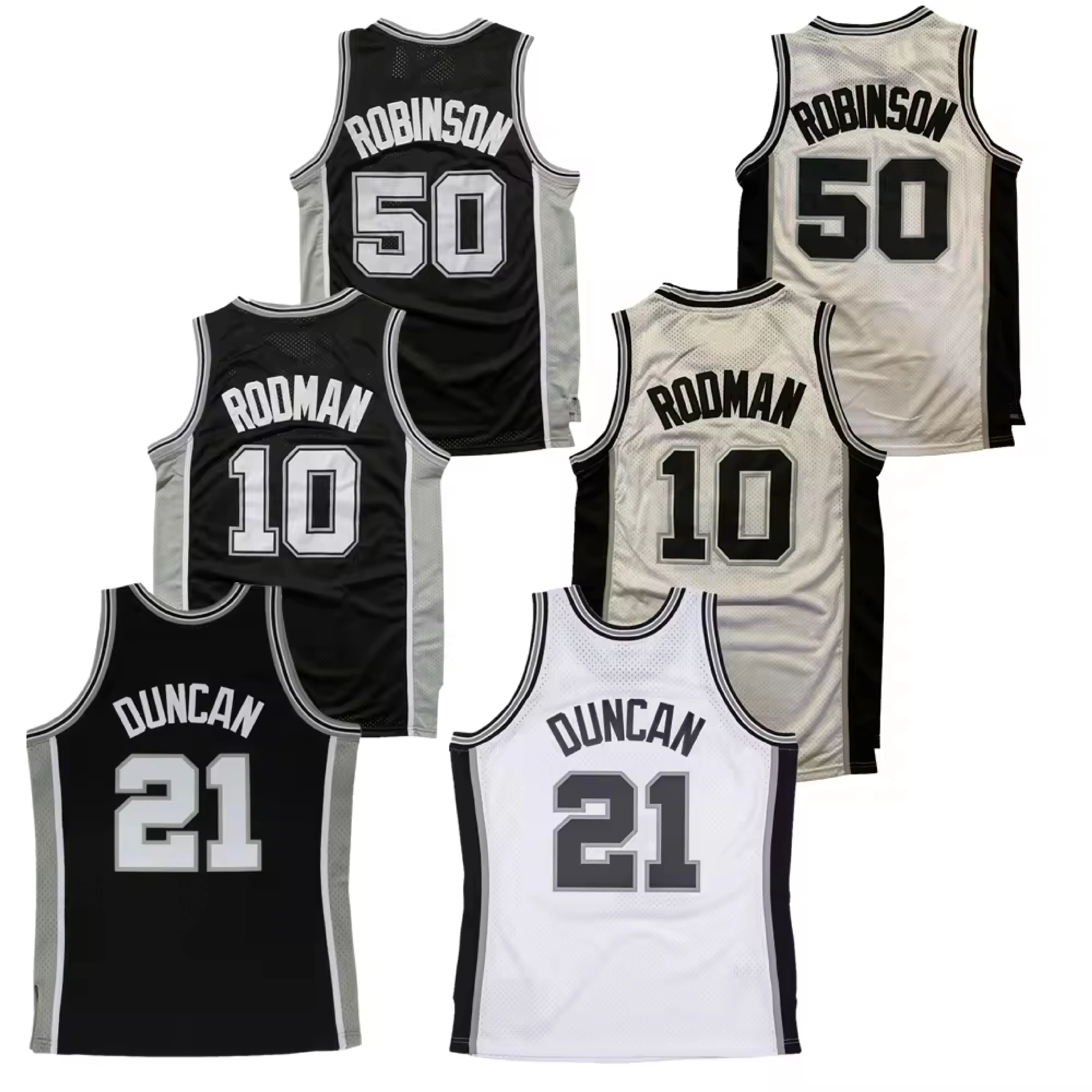 الجملة تيم دنكان 21 سان أنطونيو 10 دينيس رودمان 50 ديفيد روبنسون قمصان كرة السلة الكلاسيكية المخيطة باللون الأسود والأبيض
